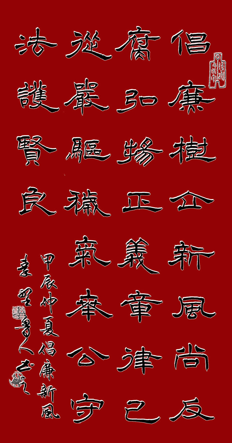 隶书中堂《七绝·倡廉新风》