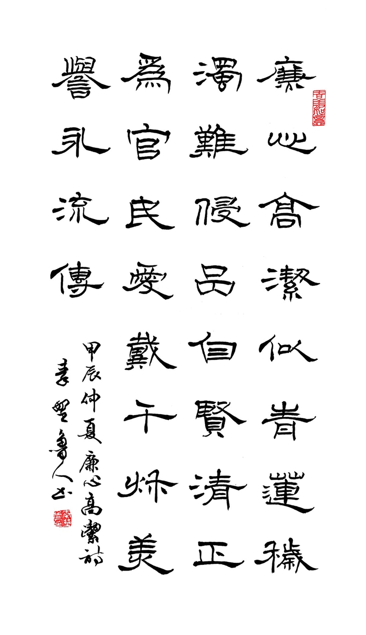 隶书中堂《七绝·廉心高洁》