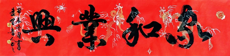 四尺行书横幅《龙兴伟业》装饰效果图