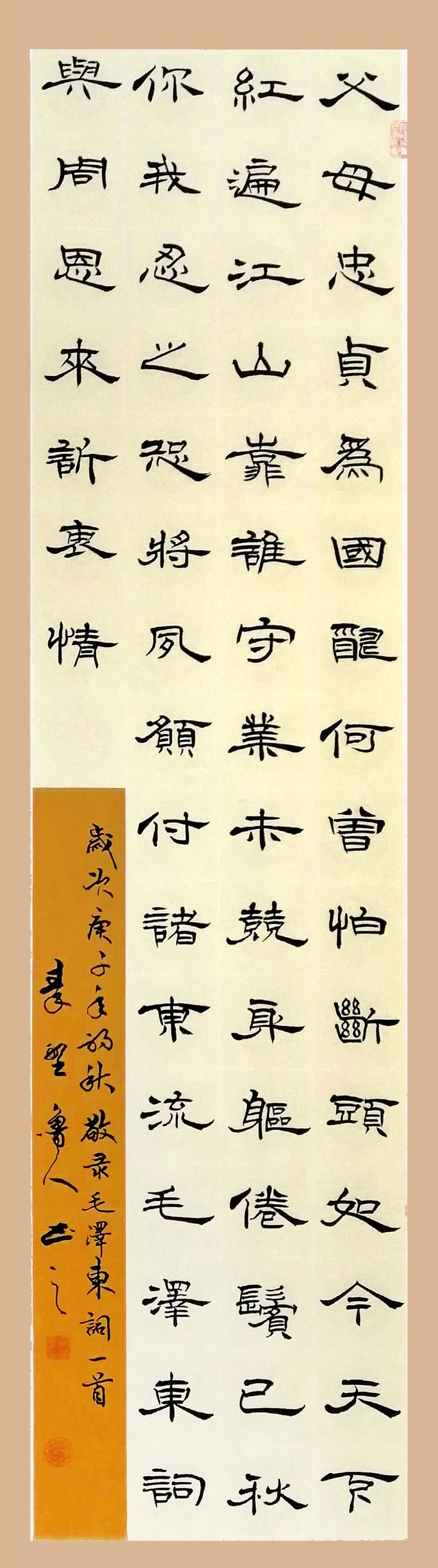 四尺隶书条幅《毛泽东词·与周恩来诉衷情》