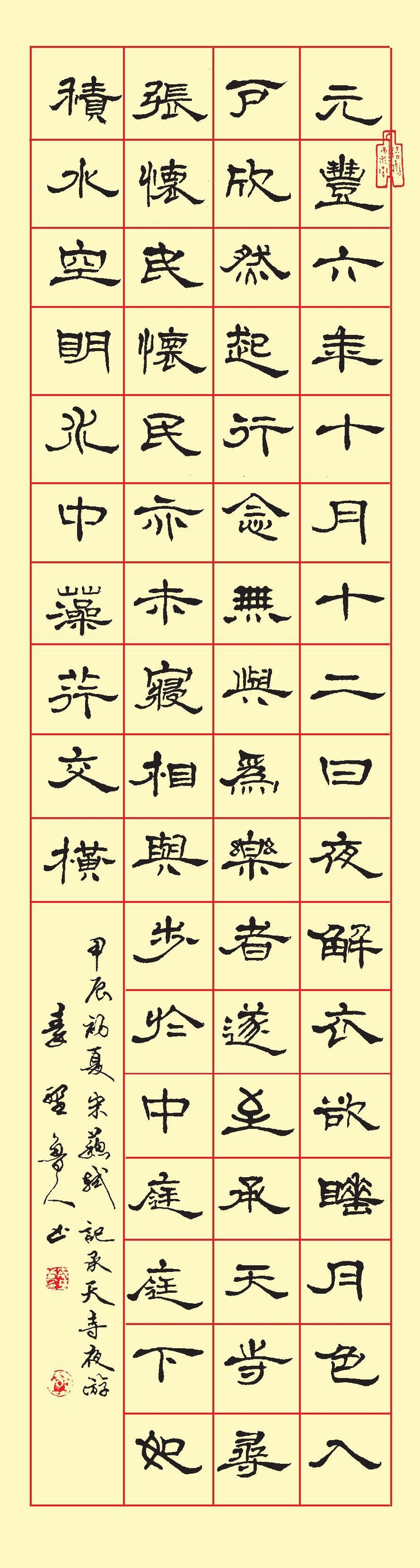 四尺隶书条幅《宋苏轼 · 记承天寺夜游》