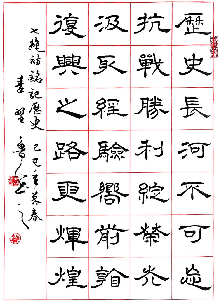 隶书中堂《七绝·铭记历史》