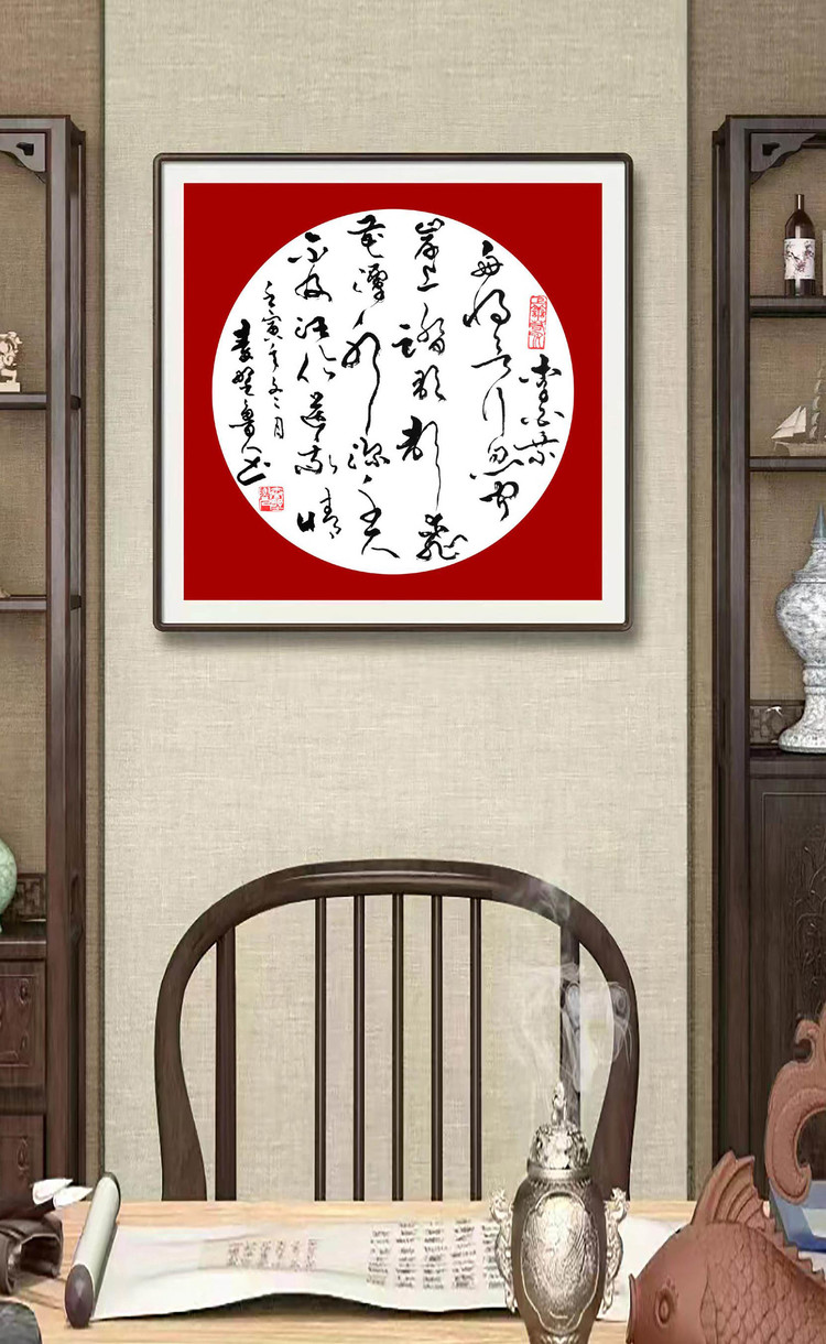 四尺草书斗方《唐李白诗·赠汪伦》装饰效果图