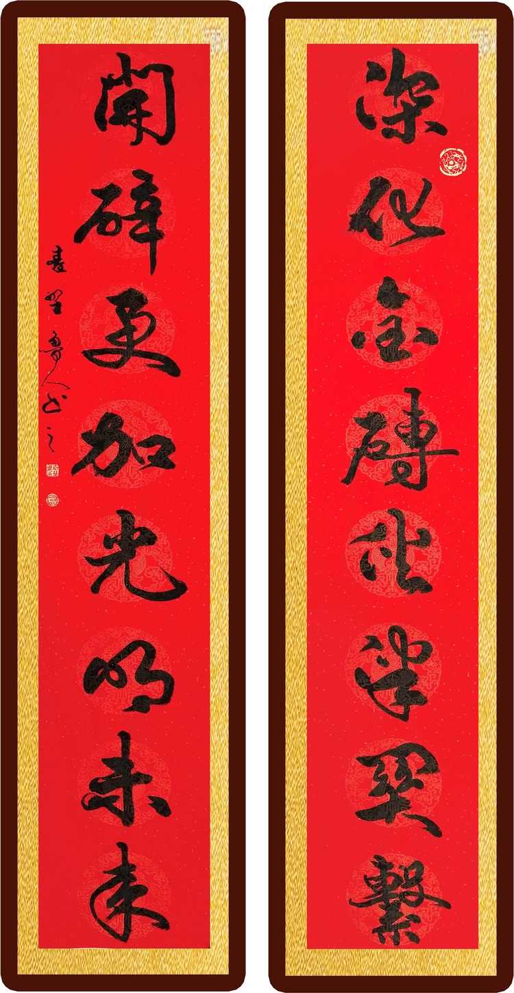 行书瓦当对联《深化金砖伙伴关系 开辟更加光明未来》装饰效果图